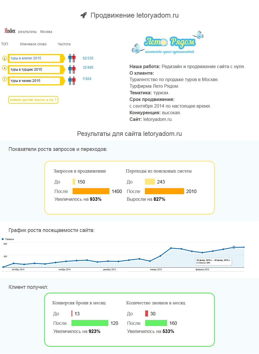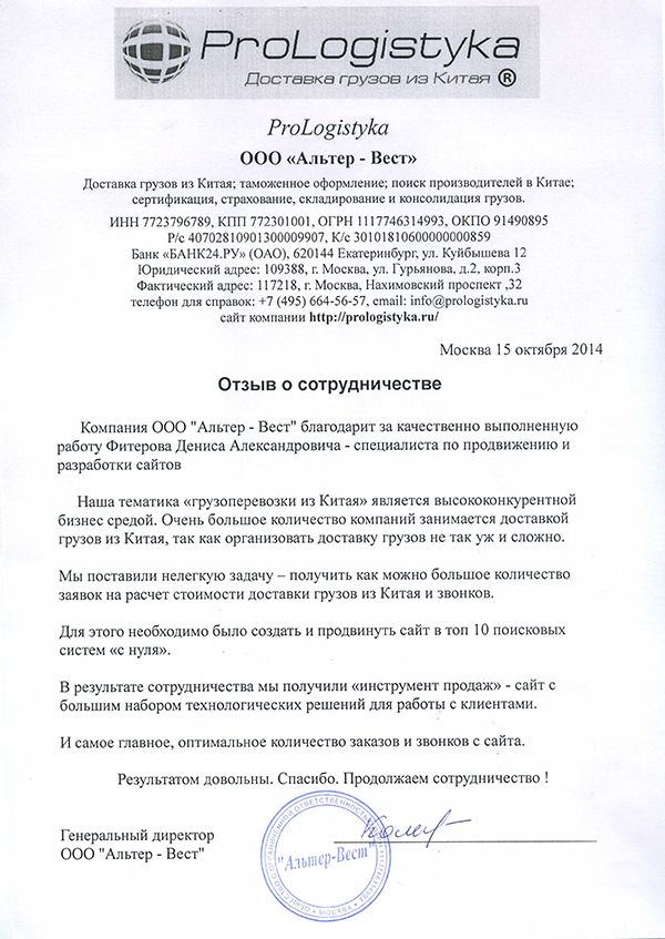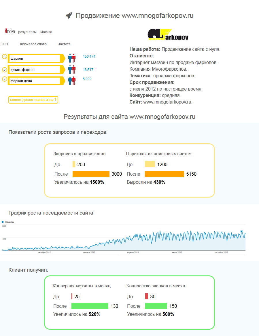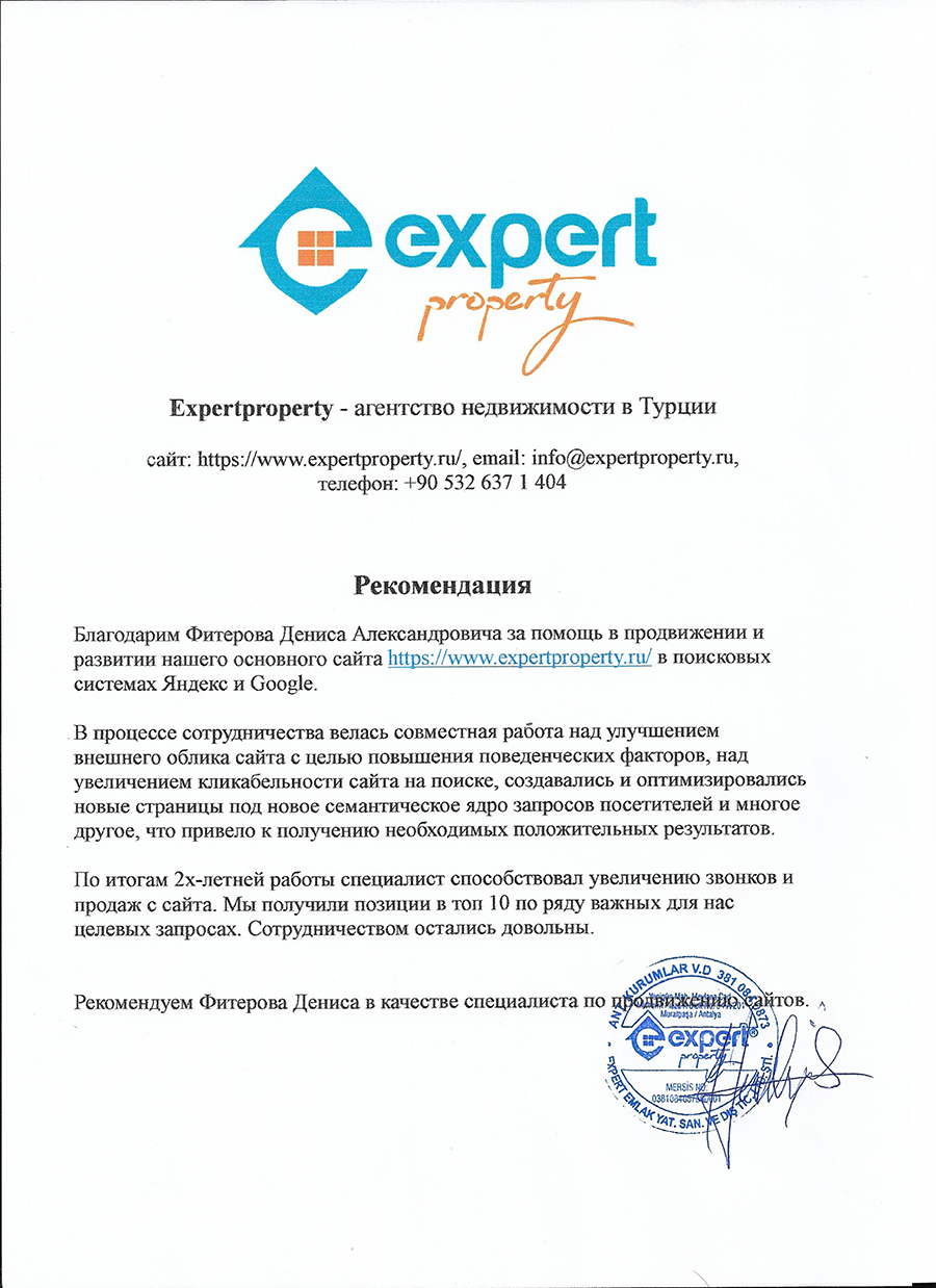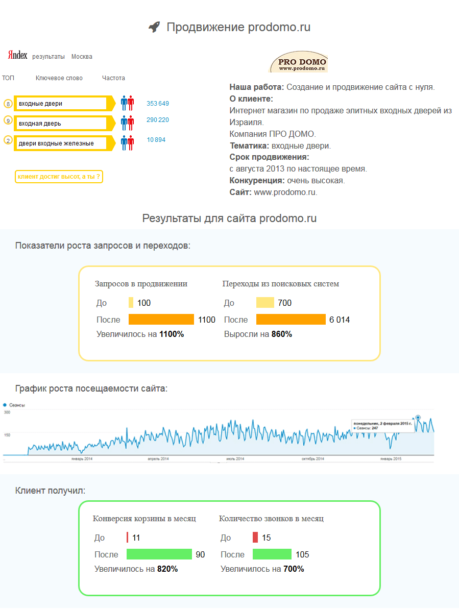 Резюмирую, выбирайте подрядчика тщательным образом. Если вы ищите специалиста, то у него обязательно должны быть дипломы, сертификаты, рекомендации от клиентов, которые можно проверить, при желании. И специалист должен разбираться не только в seo, но и в сайтостроении, проектировании сайтов. А дальше вы должны ему доверять. Заключить договор, пусть и без явных гарантий 100% попадания в топ по всем запросам, но ведь таким образом, вы будите понимать, что и ваш исполнитель уверен, что вы не уйдете от него, и будет работать на перспективу и на реальный результат, в четком в соответствии с поставленным планом работ. И вот тогда положительный результат действительно вам гарантирован.