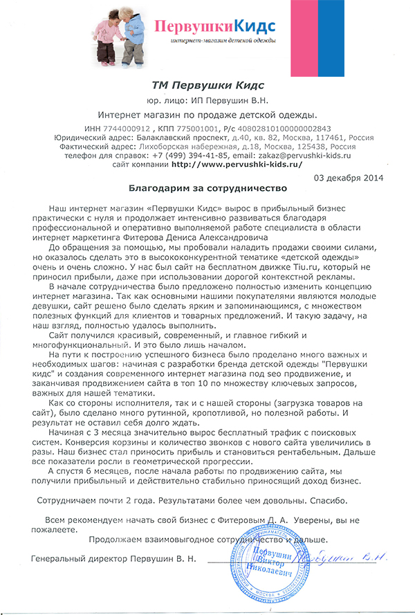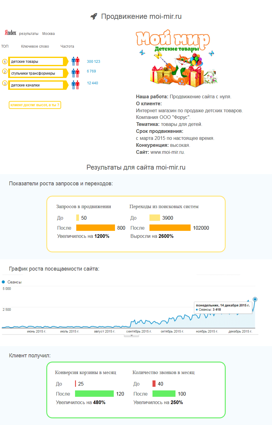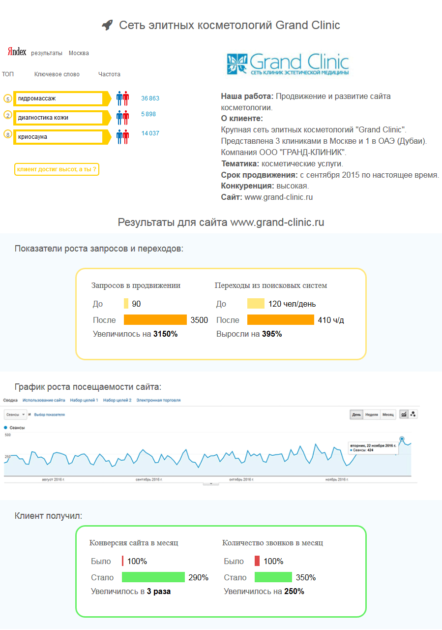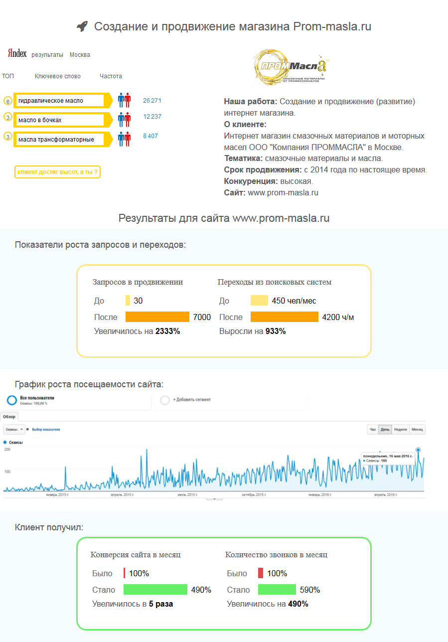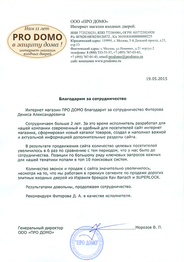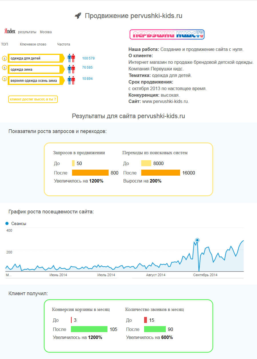 Резюмирую, выбирайте подрядчика тщательным образом. Если вы ищите специалиста, то у него обязательно должны быть дипломы, сертификаты, рекомендации от клиентов, которые можно проверить, при желании. И специалист должен разбираться не только в seo, но и в сайтостроении, проектировании сайтов. А дальше вы должны ему доверять. Заключить договор, пусть и без явных гарантий 100% попадания в топ по всем запросам, но ведь таким образом, вы будите понимать, что и ваш исполнитель уверен, что вы не уйдете от него, и будет работать на перспективу и на реальный результат, в четком в соответствии с поставленным планом работ. И вот тогда положительный результат действительно вам гарантирован.