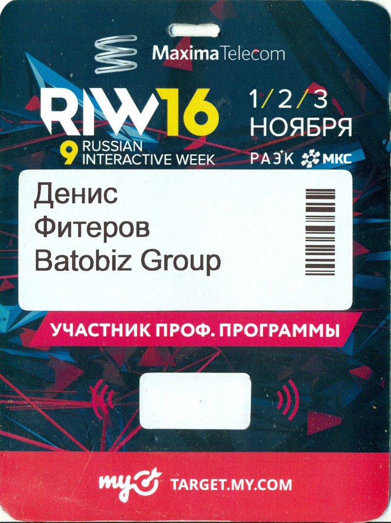 Постоянный участник конференций по интернет маркетингу: РИФ 2016, РИФ+КИБ 2016, РИФ+КИБ 2015, РИФ 2015, Яндекс Вебмастерская 5, 6, GeekWeek2016, конференция Cybermarketing 2016.